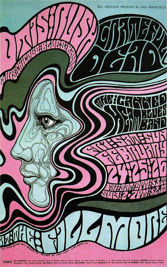 Most of us grew up familiar with the images of the psychedelic concert posters of 1960’s California. The bright colors, illegible texts and groovy images are a cultural icon.