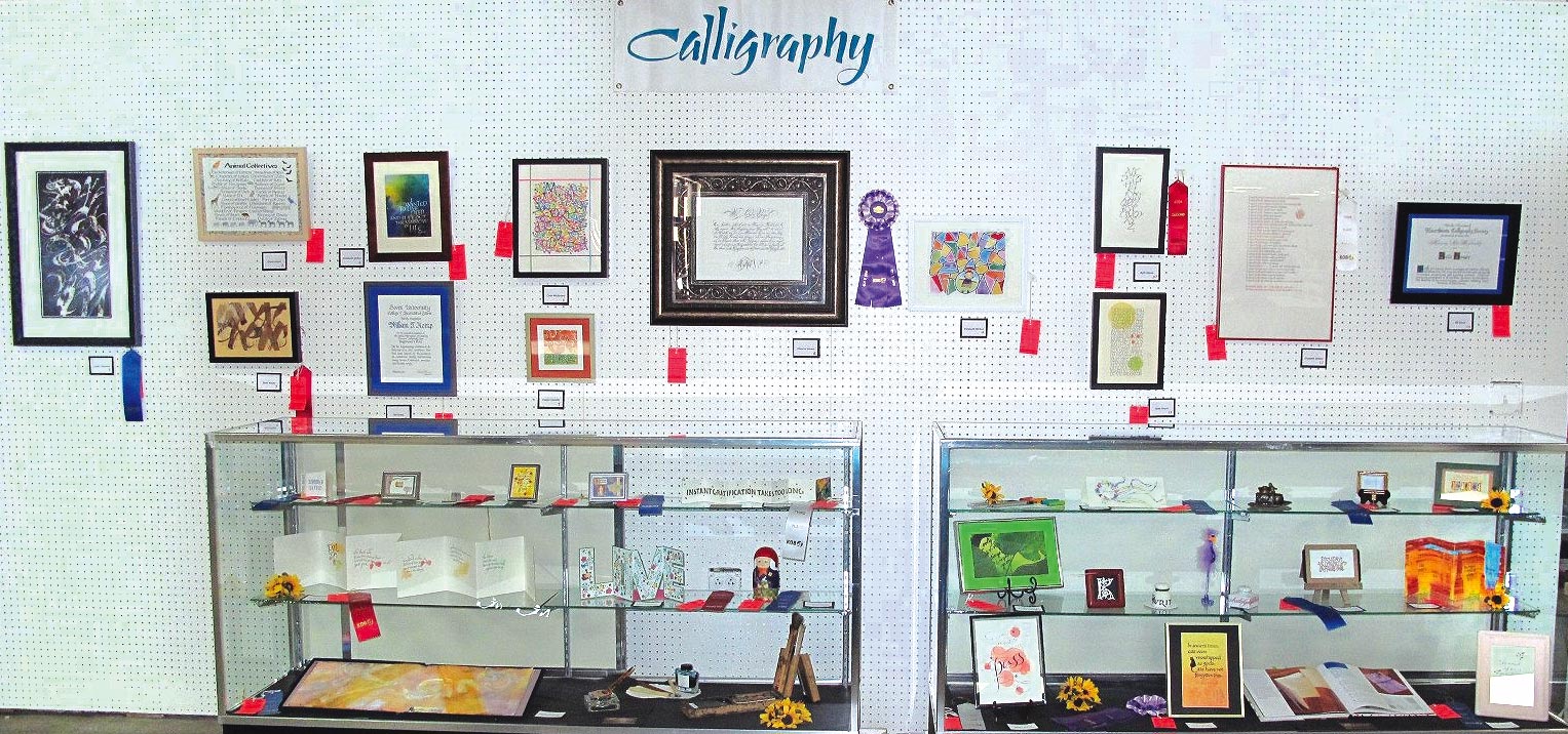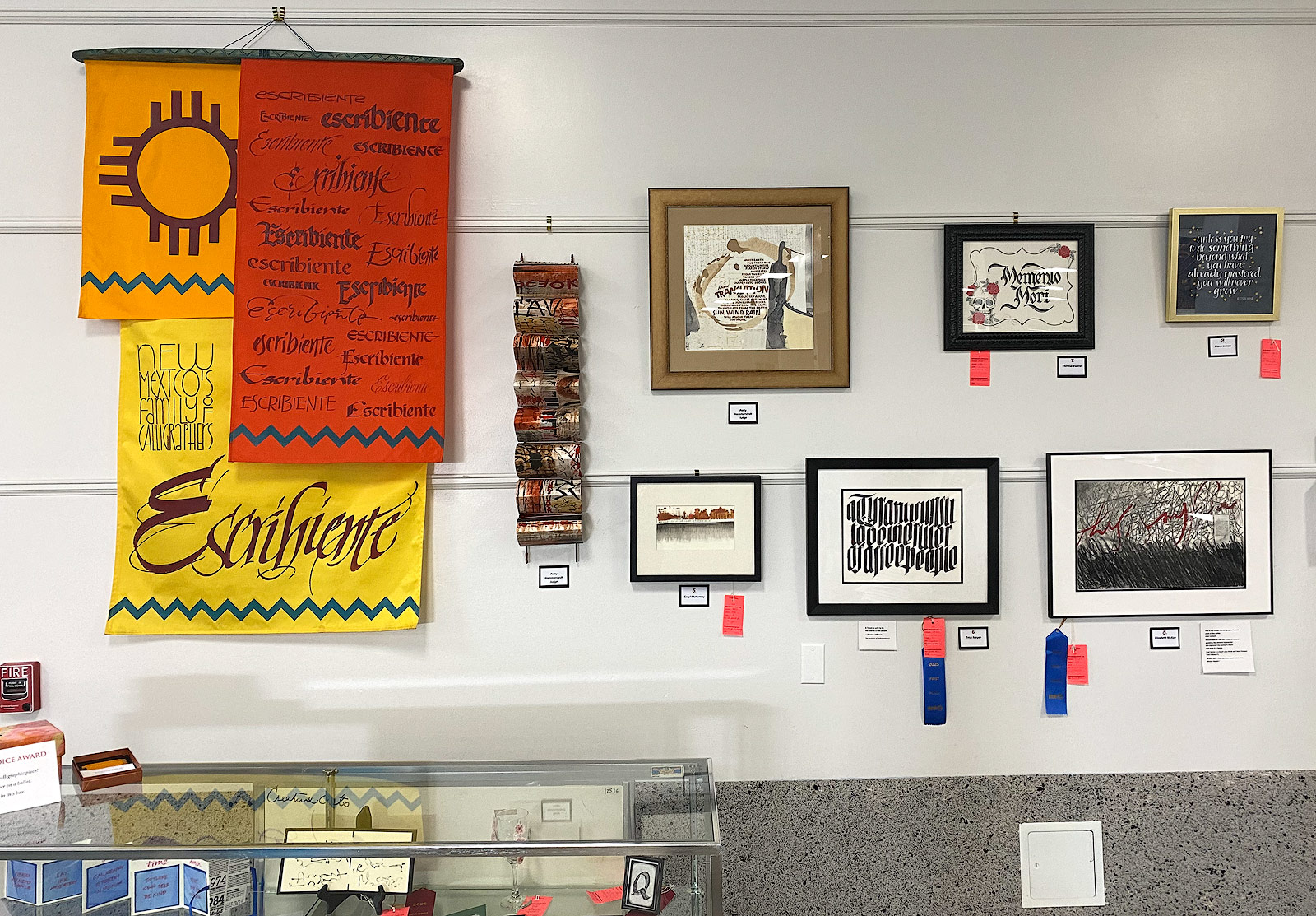 Escribiente sponsors occasional member gallery exhibitions along with displays at local libraries. We also organize the Calligraphy section in the Creative Arts building at the New Mexico State Fair held every year in September. This is a chance for every calligrapher, no matter what age or skill level, to exhibit creative work (you do not have to be a member to exhibit at the State Fair).